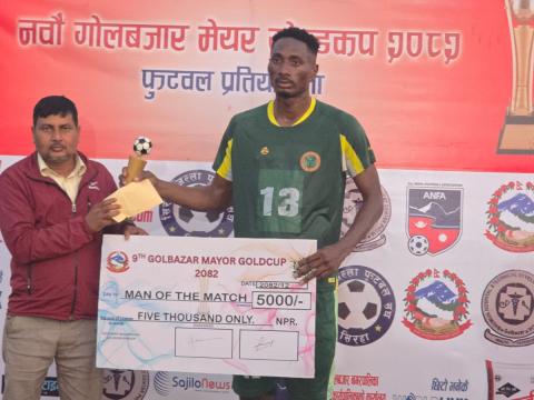 सिरहा, २९ चैत। नवौं गोलबजार मेयर गोल्ड कप २०८२ उपाधी ब्रदरहुड फुटबल क्लव उदयपुरले उचालेको छ। सल्हेश युवा क्लव सिरहासँग भएको फाईनल खेलमा १ को विरुद्ध २ गोल गर्दै ब्रदरहुड फुटबल क्लव उदयपुरले उपाधी हात ...